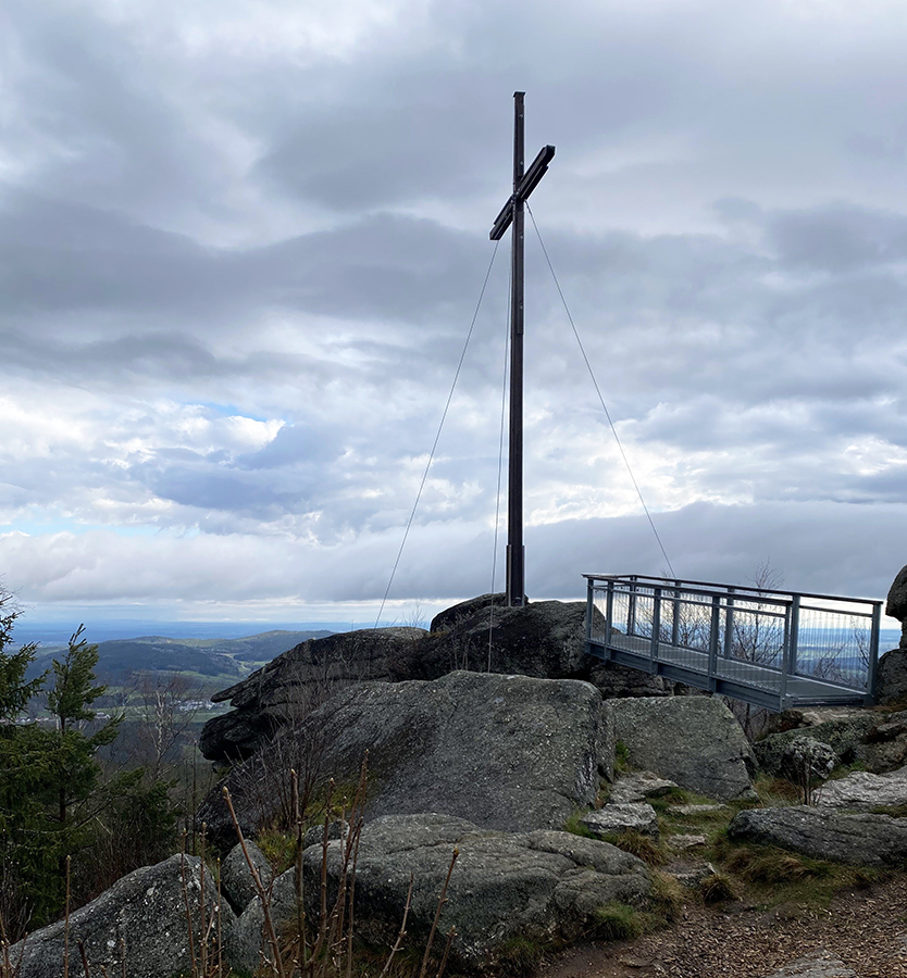 Tiahle stúpanie už len kráčam. Nechce sa mi bežať. Dostávam sa na Nebelstein, je tu kruhový výhľad.